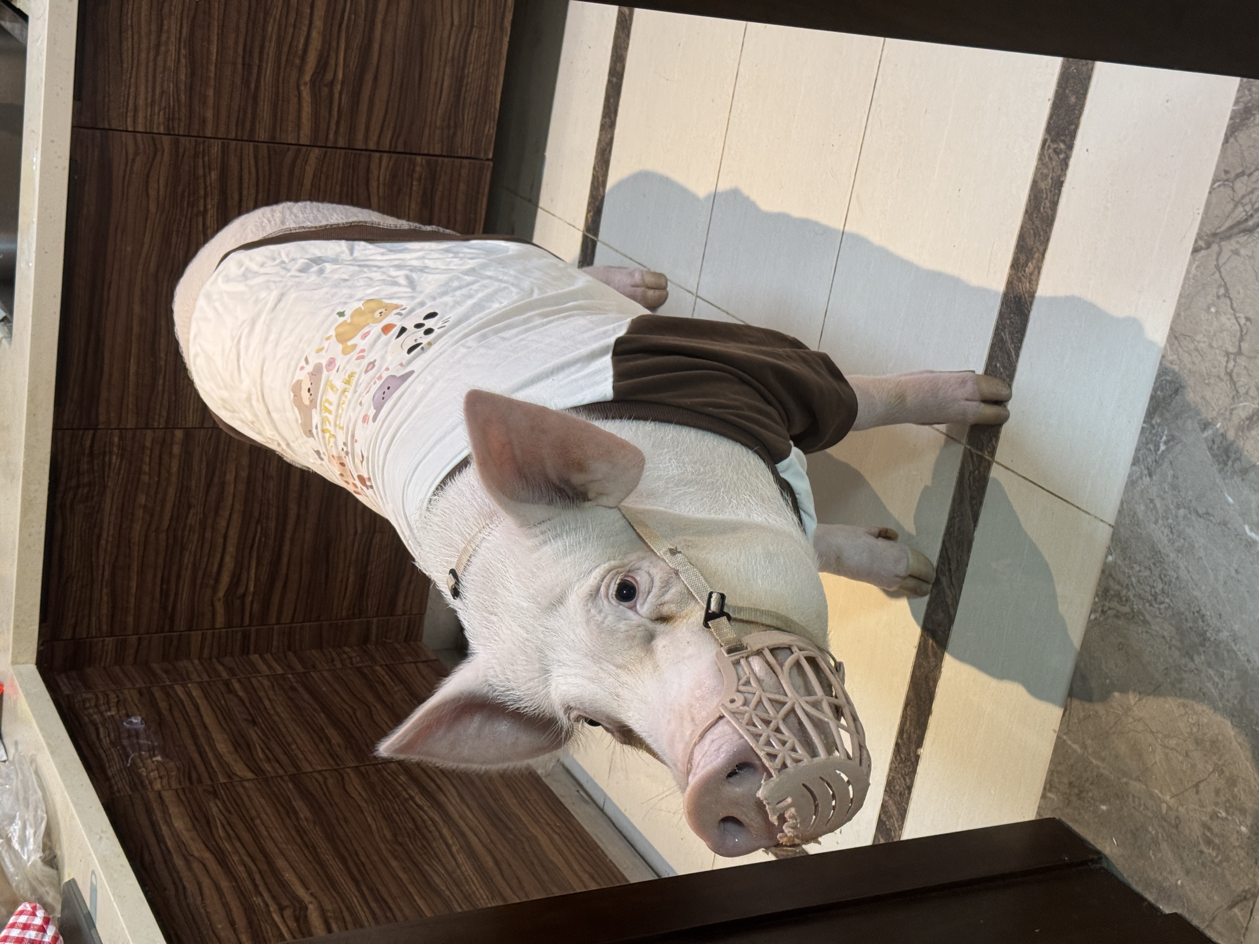 猪蹄花出门要戴嘴套